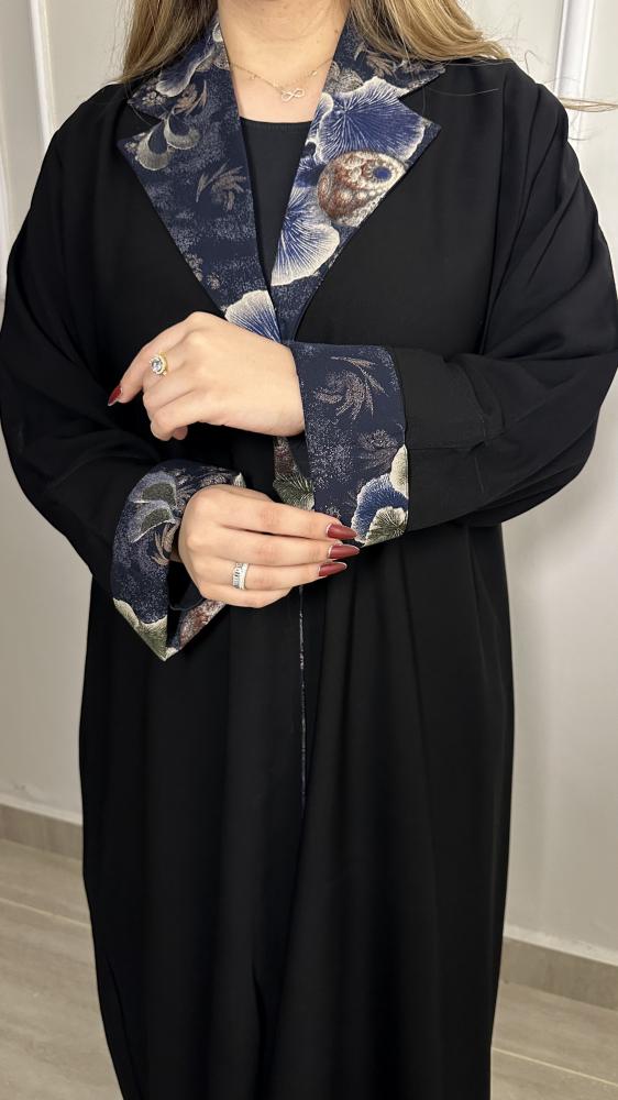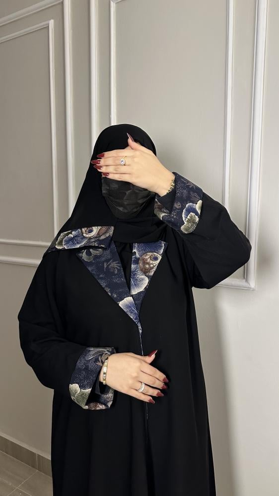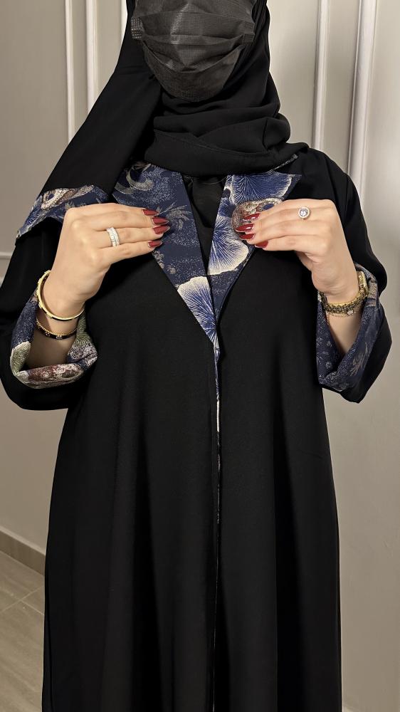 ✨ عباية سوداء بتصميم أنيق ولمسة كحلية ✨
