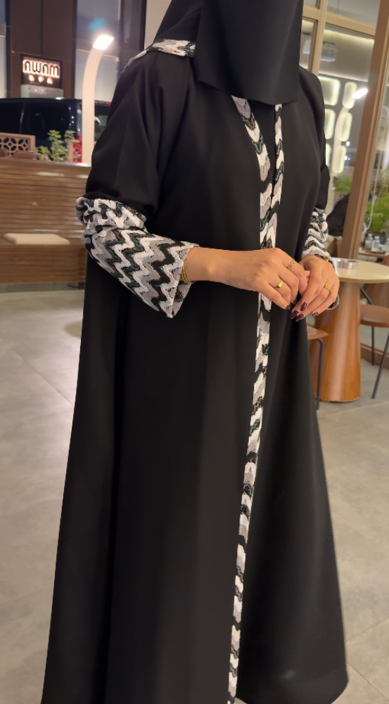 عباية مثالية لإطلالة مسائية أو مناسبة راقية، تمنحك حضورًا أنيقًا لا يُنسى.