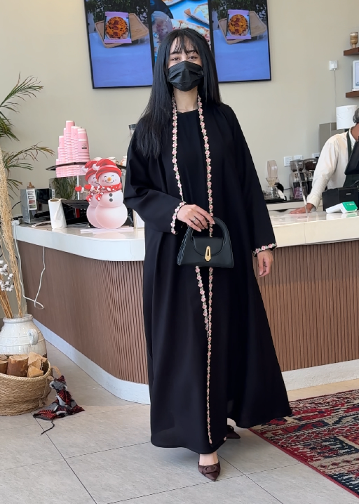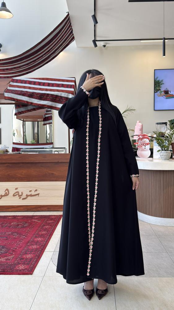 ✨ عباية وردية التطريز – لمسة أنوثة راقية بلمسات بسيطة وأنيقة ✨