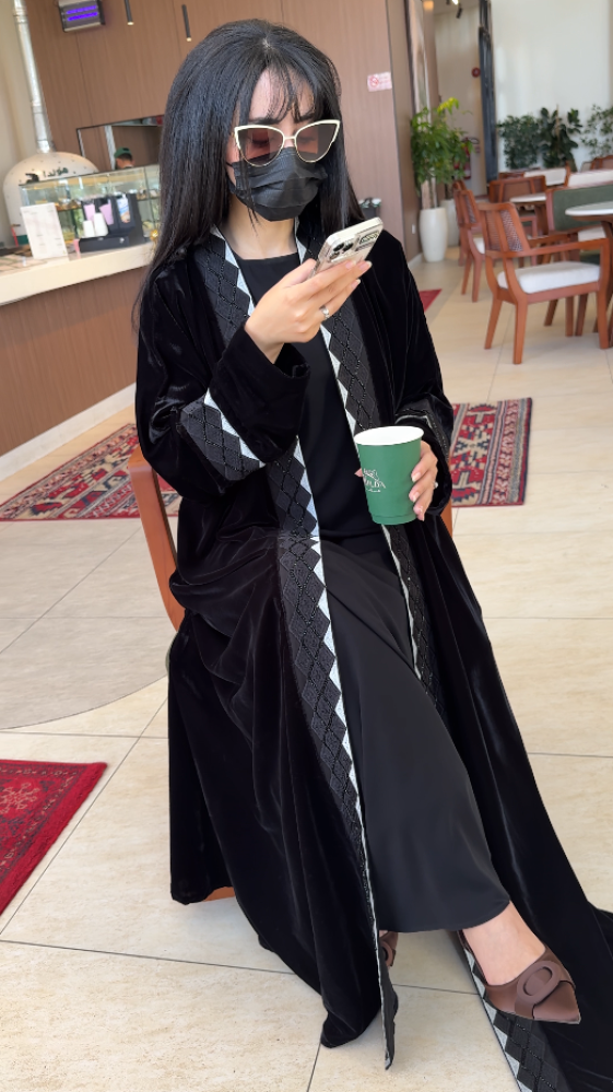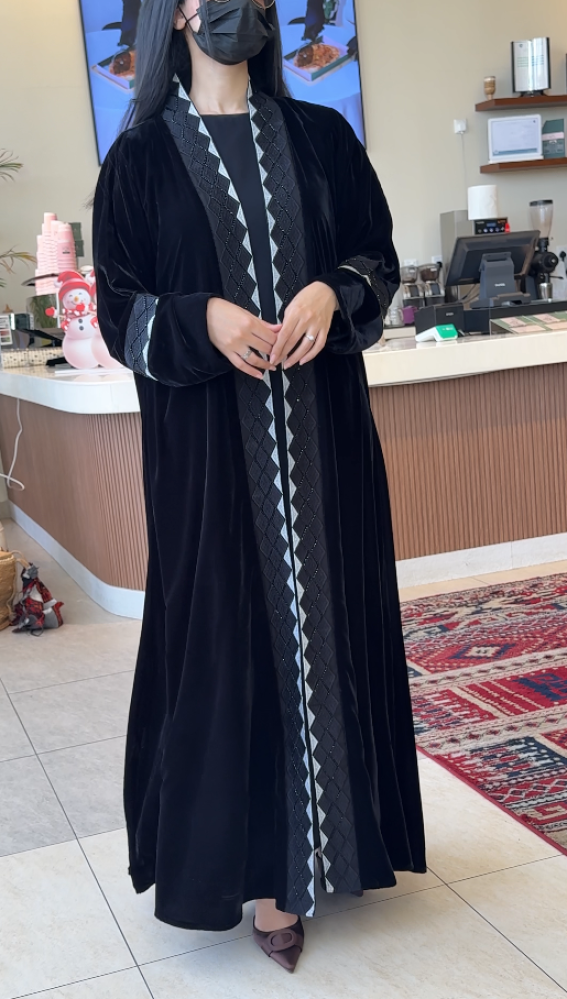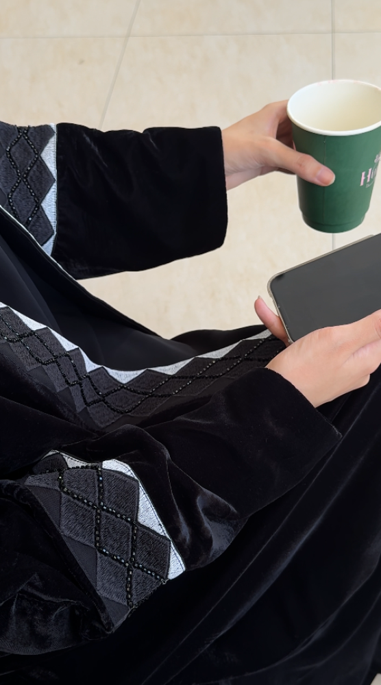✨ عباية مخمل فاخرة بتطريز هندسي راقٍ ✨