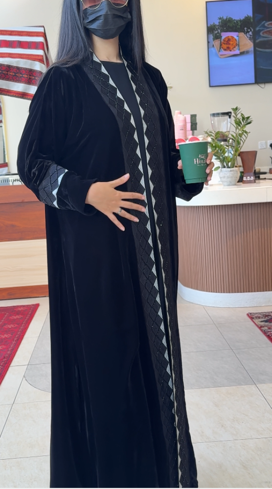 تميّزي بإطلالة فاخرة تجمع بين اللمسة الكلاسيكية والروح العصرية. عباية مخمل ناعم بملمس فاخر تضيف لك حضوراً أنيقاً في كل مناسبة .