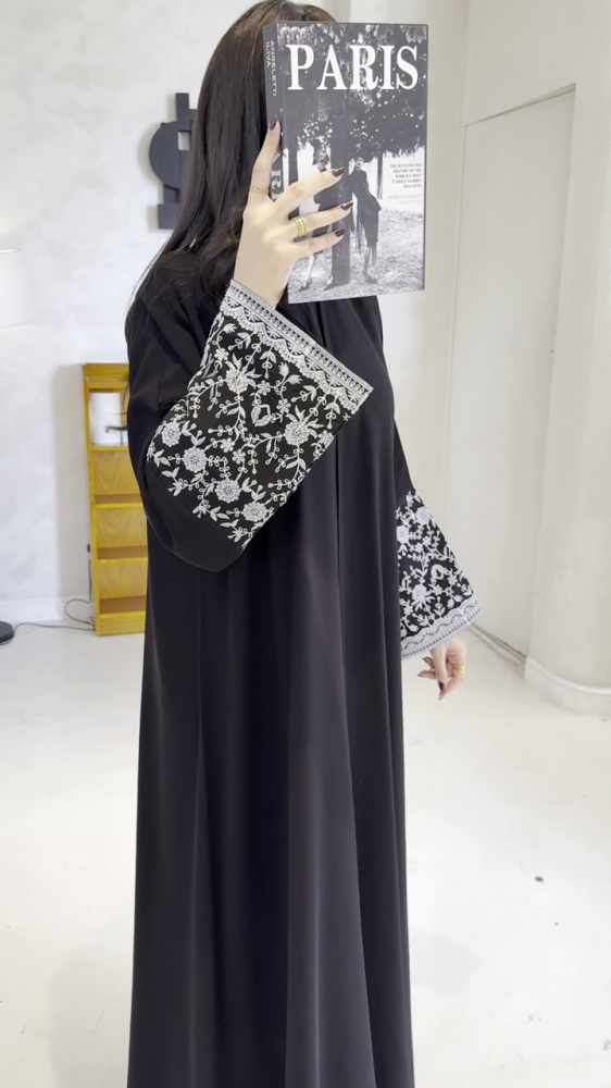 عبايتنا مصنوعة من القماش الكوري الملكي درجة أولى، المعروف بملمسه الفاخر وانسيابيته المذهلة – خيارك المثالي للتميّز والرقي في كل مناسبة.